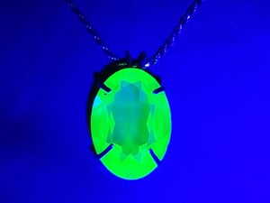 Welp, since there have been so, sooo many requests for pendants in my Radioactive Rarities lines. Okay, I hear you, and here ya go!! Fresh off the workbench of your resident glowy goddess, brand new pendant designs for your viewing pleasure. Who has a black light and isn't afraid to use it? This lady, right here. XD