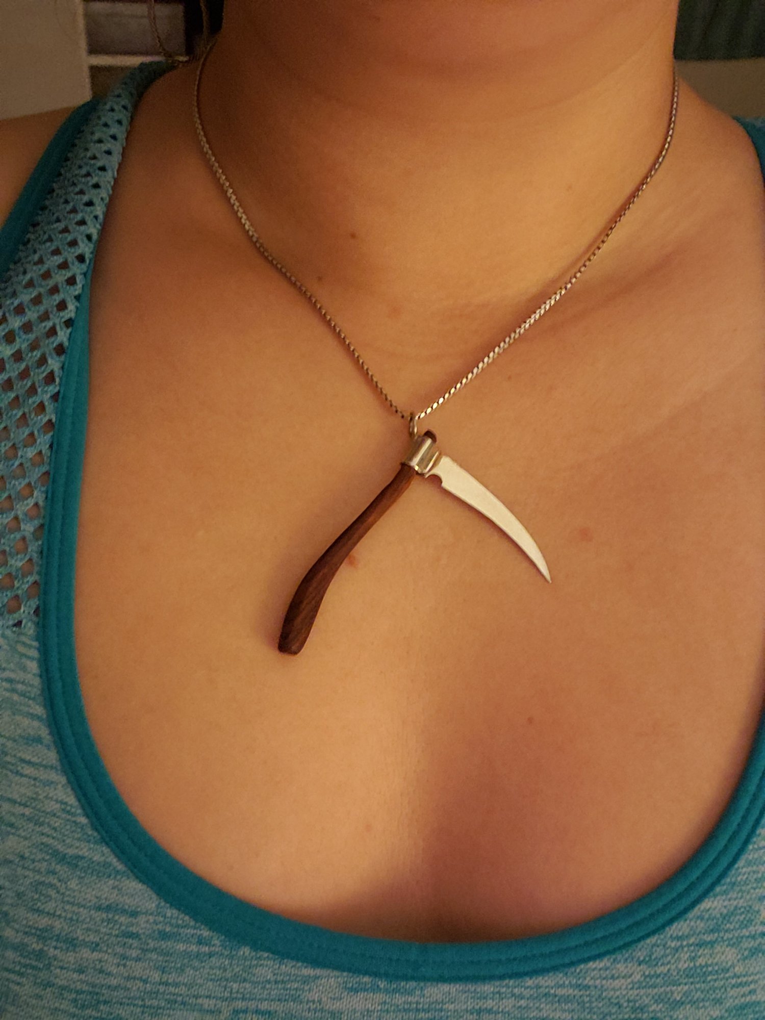 Take a slice out of life! These dangerous darlings are just dying to dangle at your throat. Scythe through the myriads of compliments you'll get from these fabulous pieces. A handmade, one of a kind miniature scythe.